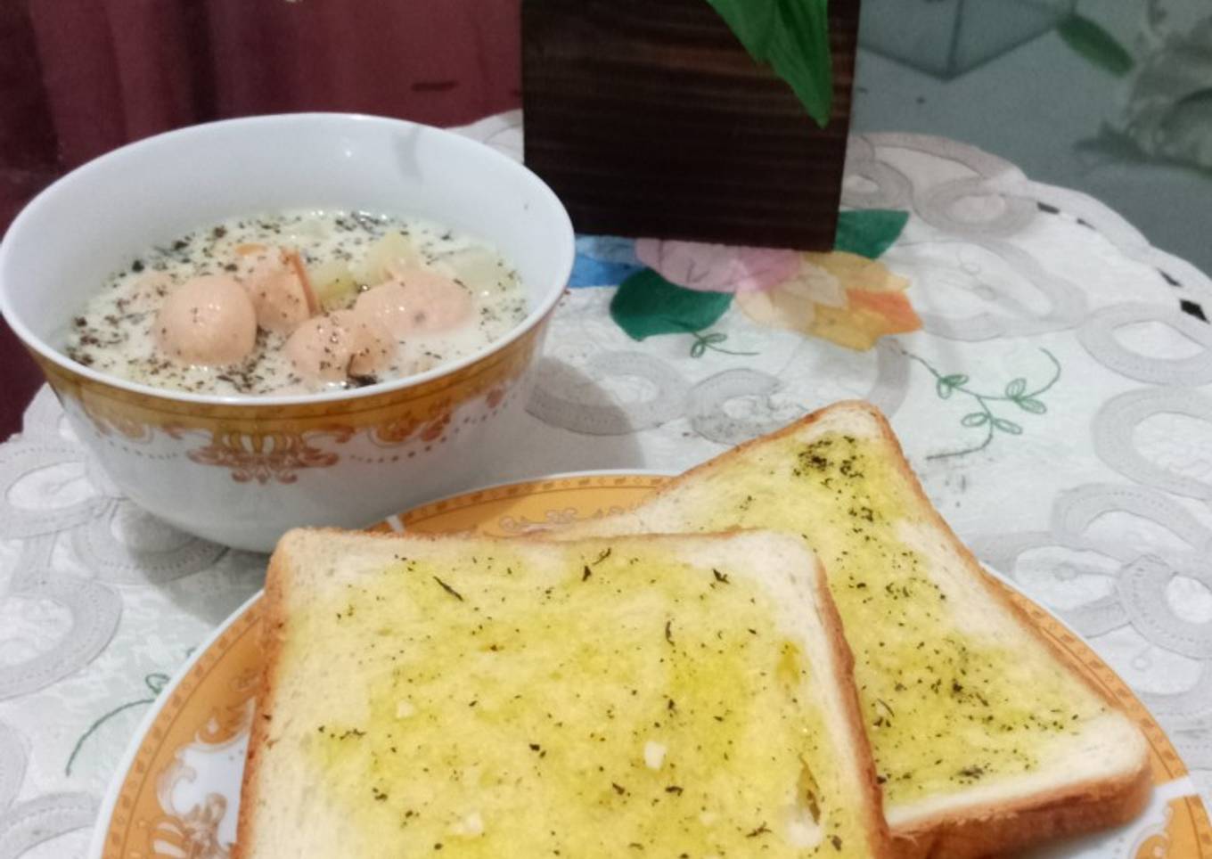 Bagaimana Menyiapkan Soup Cream Dan Garlic Bread Rumahan, Enak