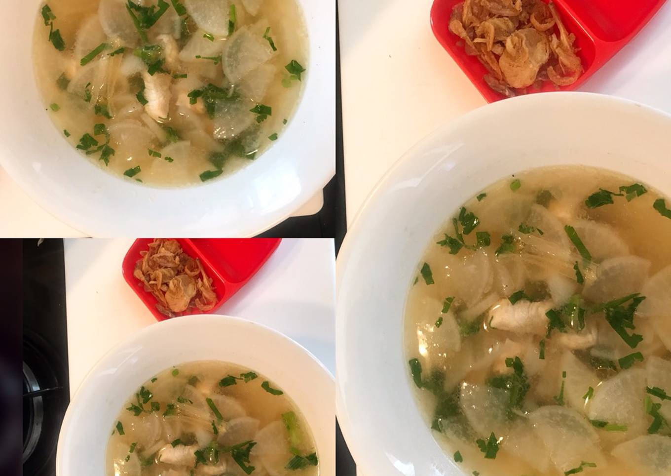 Ada beberapa hal yang sedikit banyak mempengaruhi kualitas rasa dari 2 Bahan Lobak+Ayam Sop, pertama dari jenis bahan, selanjutnya pemilihan bahan segar, sampai cara membuat dan menyajikannya. Tidak usah pusing kalau mau menyiapkan 2 Bahan Lobak+Ayam Sop enak di rumah, karena asal sudah tahu triknya maka hidangan ini mampu menjadi suguhan istimewa. Seterusnya adalah gambar tentang 2 Bahan Lobak+Ayam Sop yang bisa Anda jadikan contoh.