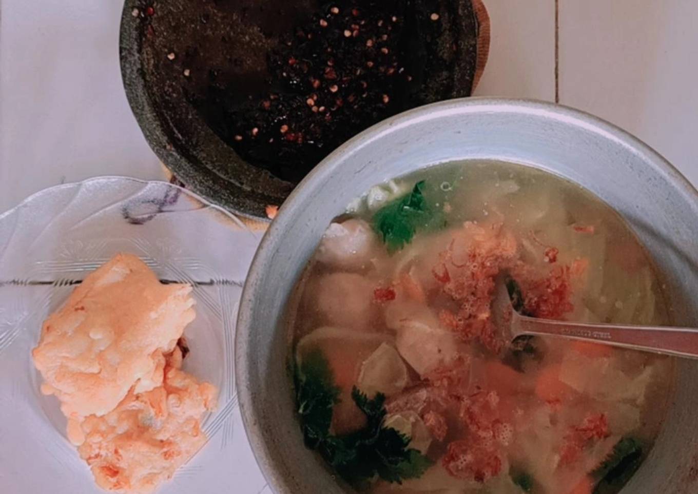 - Cuci bersih sayuran sup seperti wortel, kol dll lalu iris sesuai selera