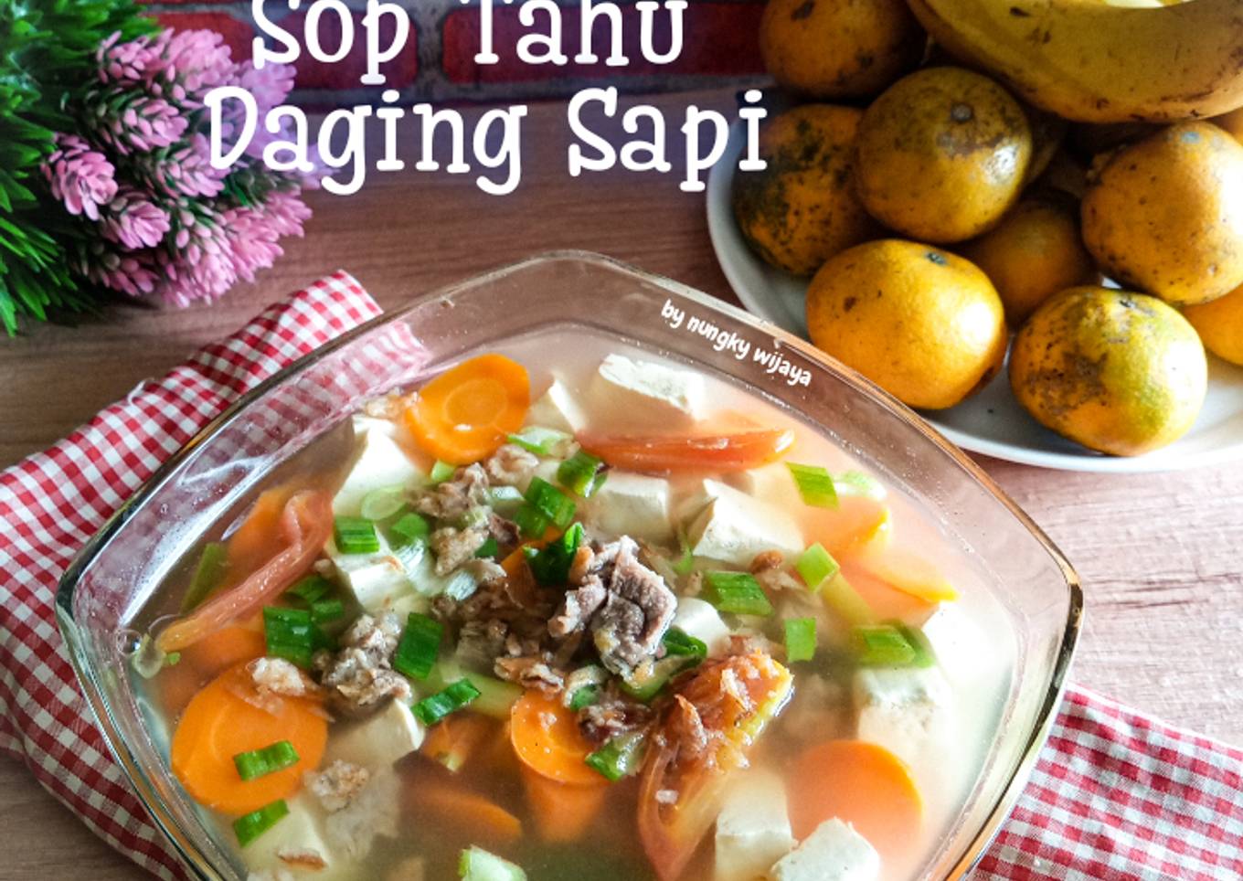 Ada beberapa hal yang sedikit banyak mempengaruhi kualitas rasa dari Sup tahu daging sapi, pertama dari jenis bahan, kemudian pemilihan bahan segar, hingga cara mengolah dan menyajikannya. Tak perlu pusing kalau mau menyiapkan Sup tahu daging sapi enak di mana pun anda berada, karena asal sudah tahu triknya maka hidangan ini dapat menjadi suguhan spesial. Seterusnya merupakan gambar mengenai Sup tahu daging sapi yang dapat kamu jadikan contoh.