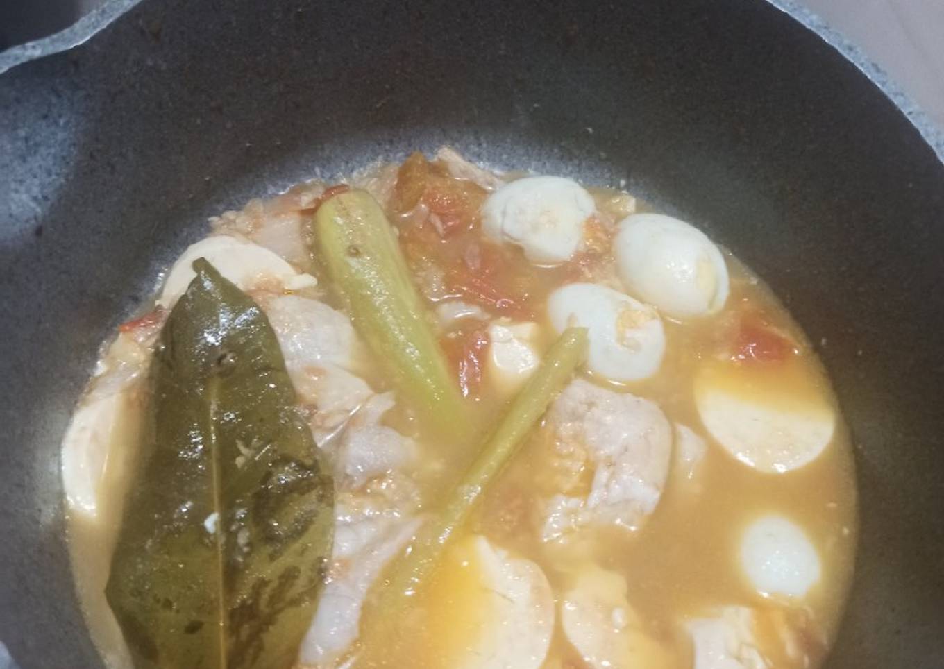 - Panaskan minyak, lalu masukan bumbu halus, setelah tercium aroma harum masukan daun salam, tomat, lengkuas, sereh, air / kaldu, asam jawa, coba jangan sampai terlalu asam ya!