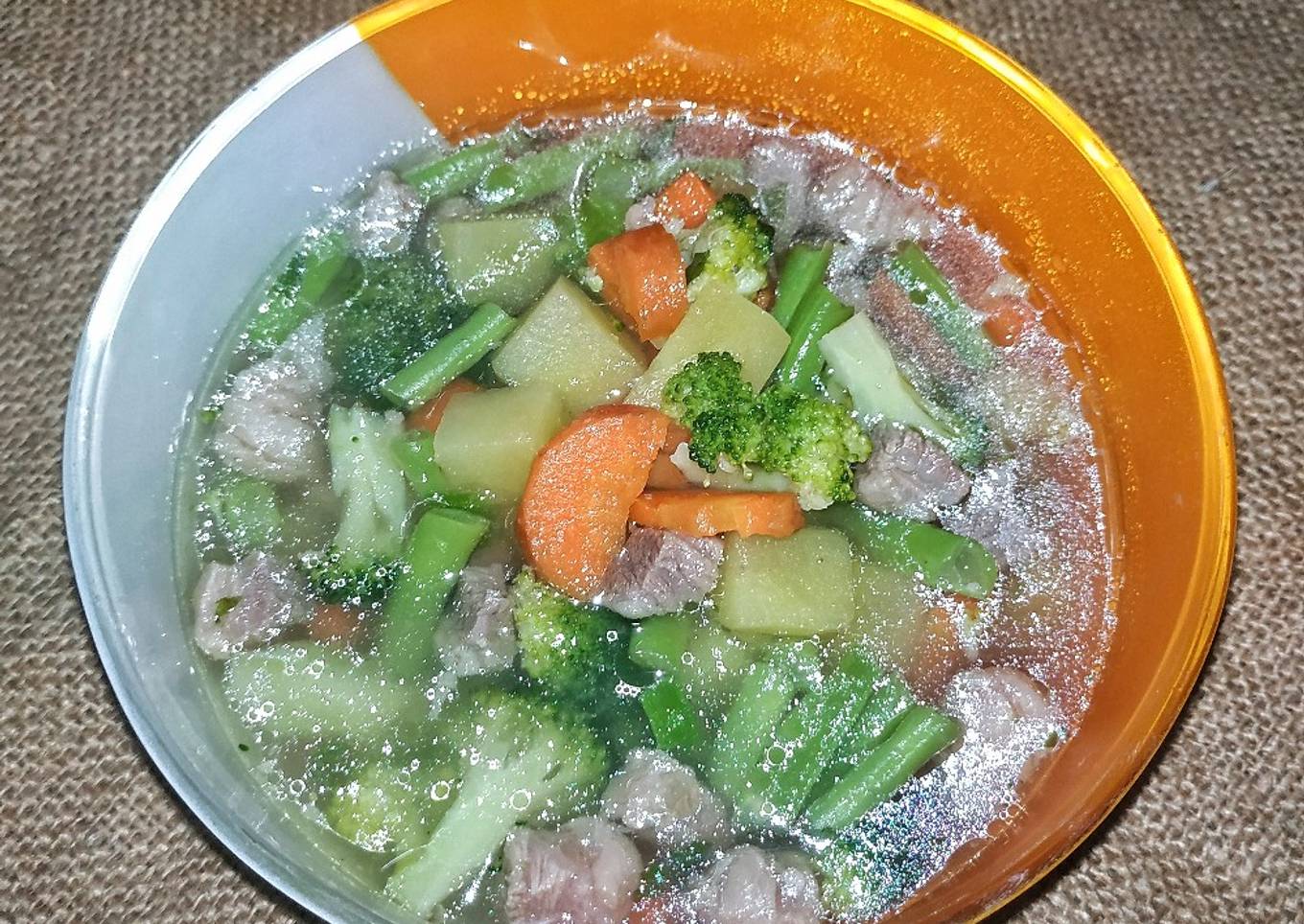 - Masukan brokoli, masukan buncis. Masukan bumbu Soup. Aduk rata.