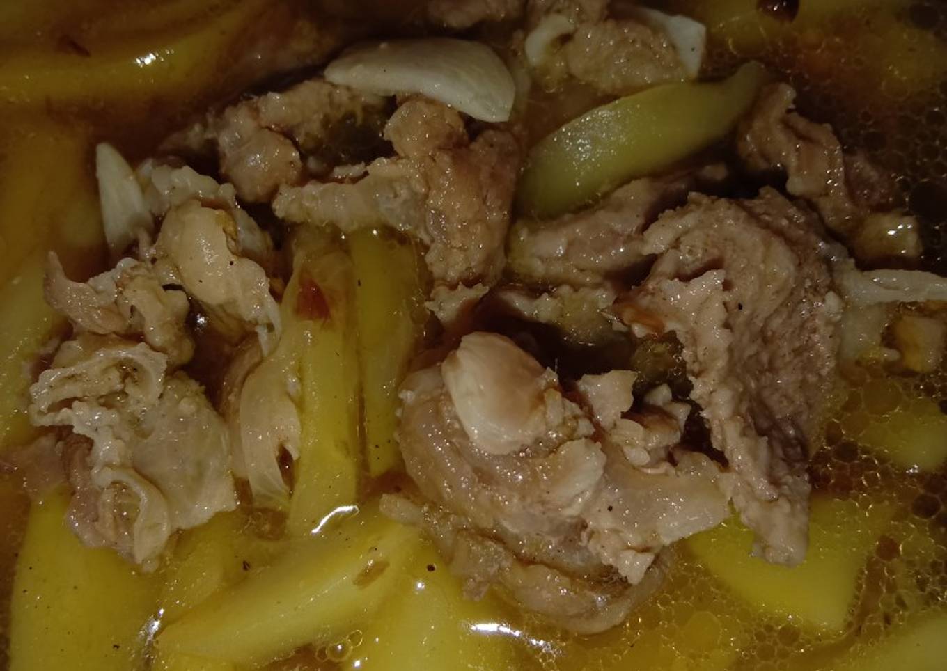 - Setelah itu, masukan daging yg sudah disiapkan, lalu masukan kentang yang sudah dipotong