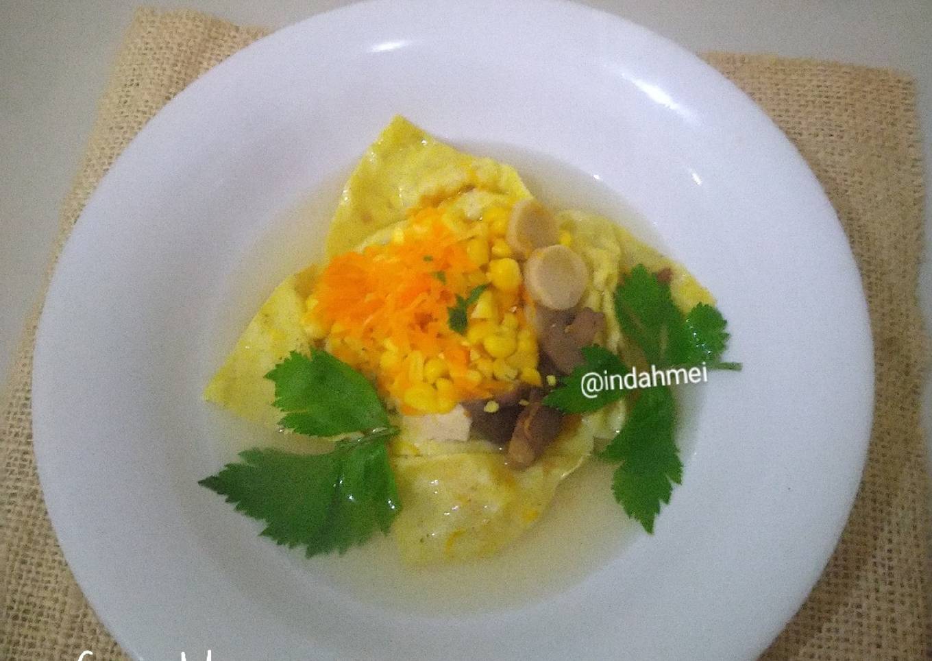 Tadinya saya pikir untuk bebikin sup ini susah. Ternyata mudah kok. Yang agak susah adalah saat ngebungkus isiannya pakai dadar.