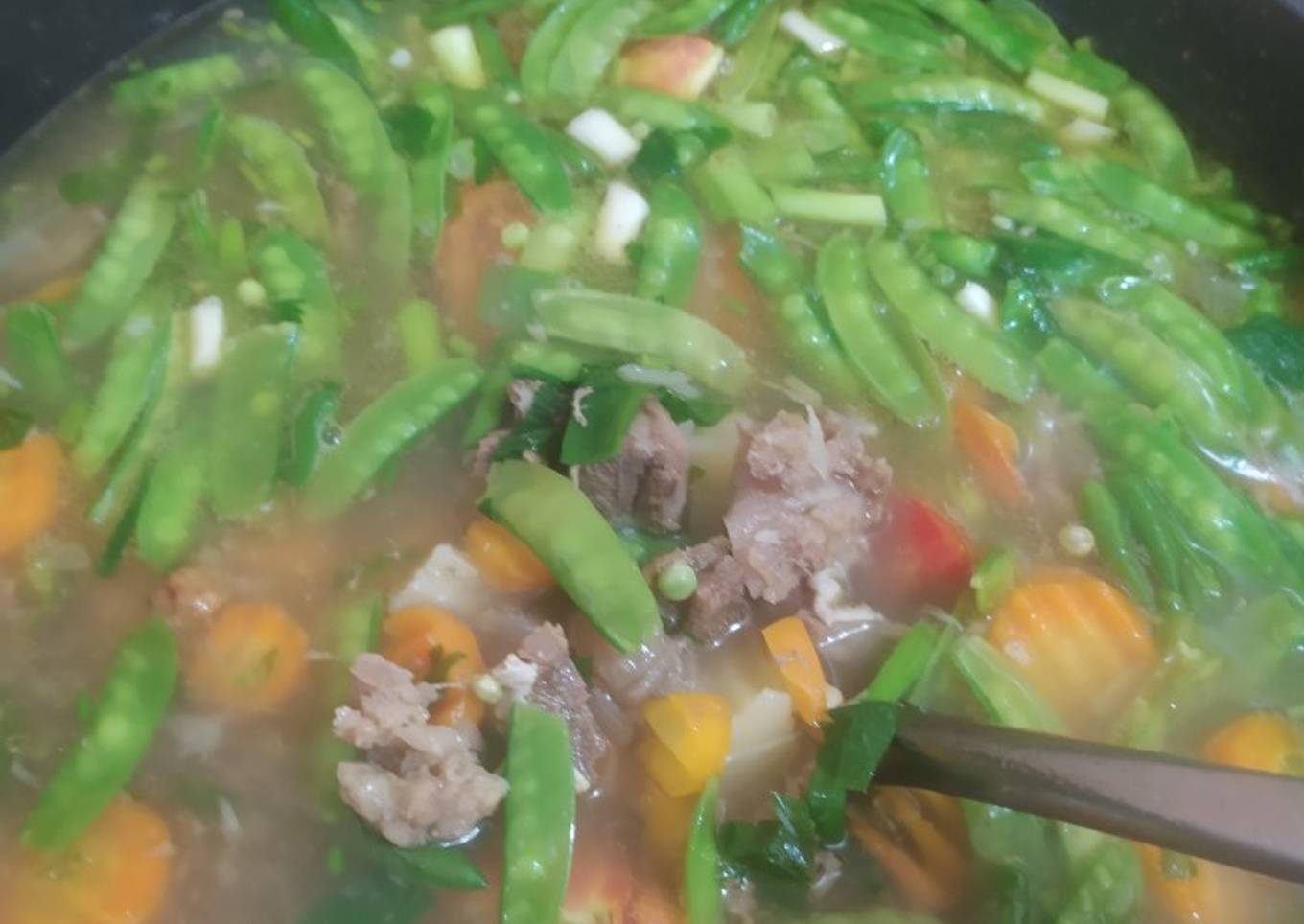 - Setelah air kembali mendidih masukan sayuran dimulai dari kentang, wortel, terakhir ketika sudah matang kentang dan wortel masukan kapri, tomat, daun bawang dan seledri. Jangan lupa koreksi rasa dan sup siap dihidangkan.