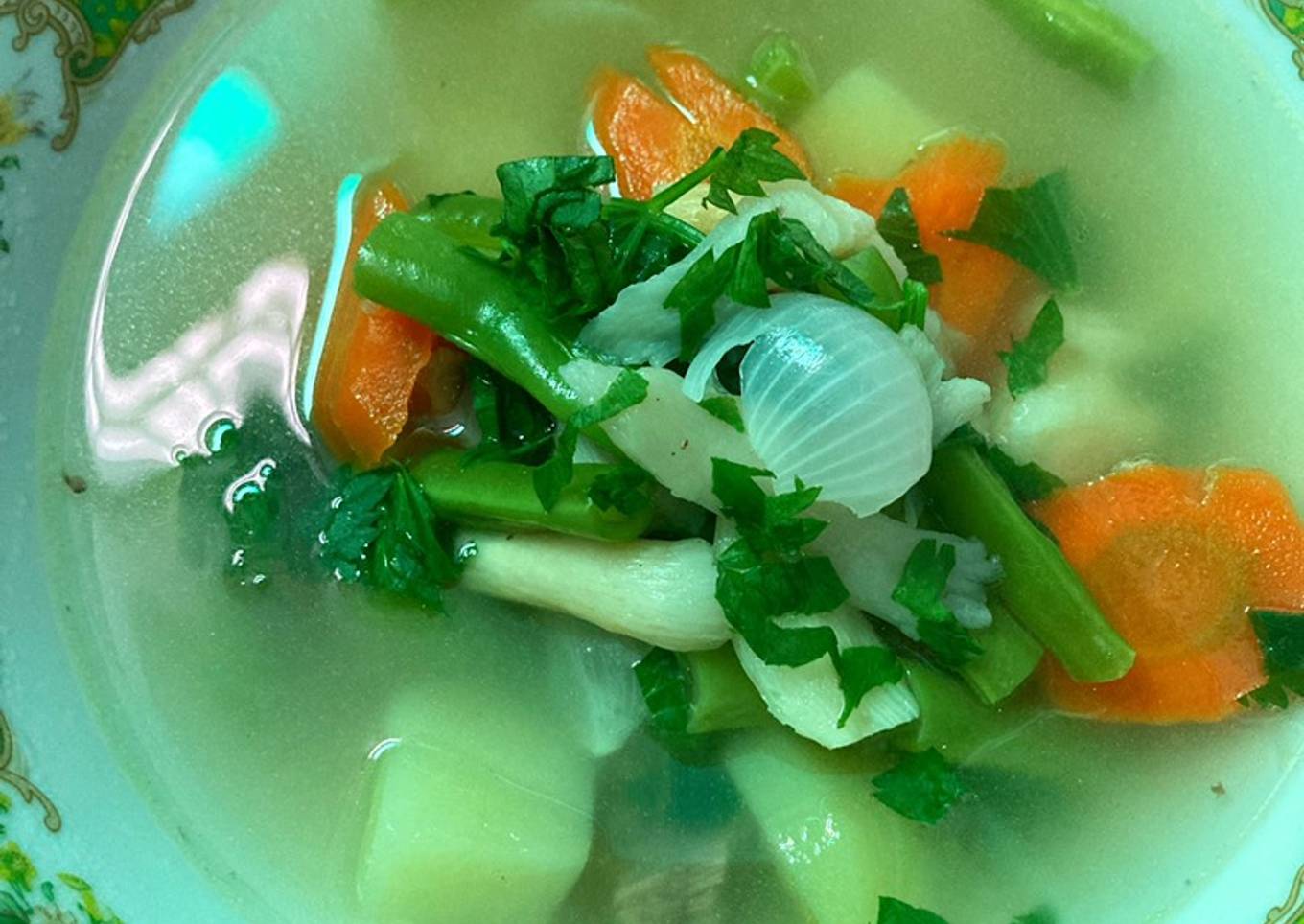 - Koreksi rasa, kemudian masukan potongan kentang, wortel, buncis kecuali jamur tiram