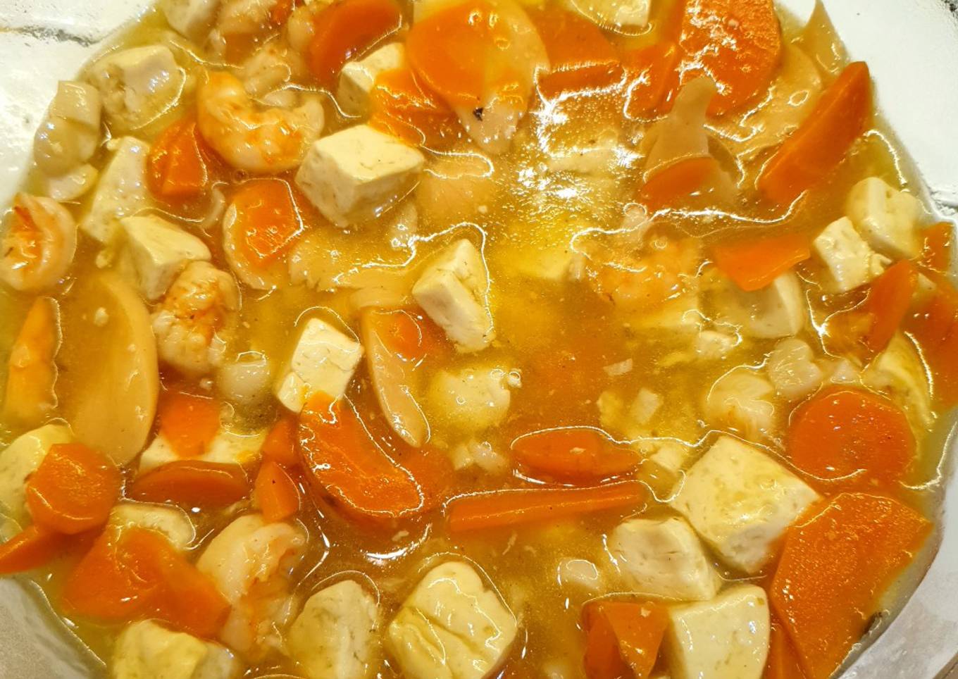 Adaptasi dari menu sup tofu cerianya 'nawang okta'. Bahan2nya dari yg sudah ada di kulkas saja. Cocok buat si kecil yg lg ga boleh makan goreng2an.