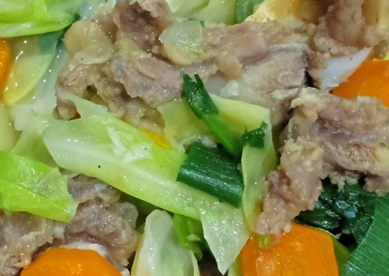 - Masukkan garam dan royco aduk rata dan masukkan kol, daun bawang dan sledri