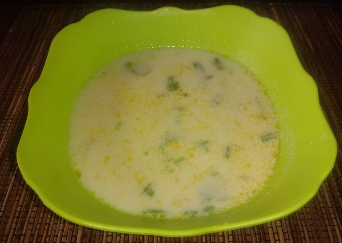 - Masukkan susu cair sledri garam gula margarin, masukkan tepung tepioka, biarkan sd agak mengental