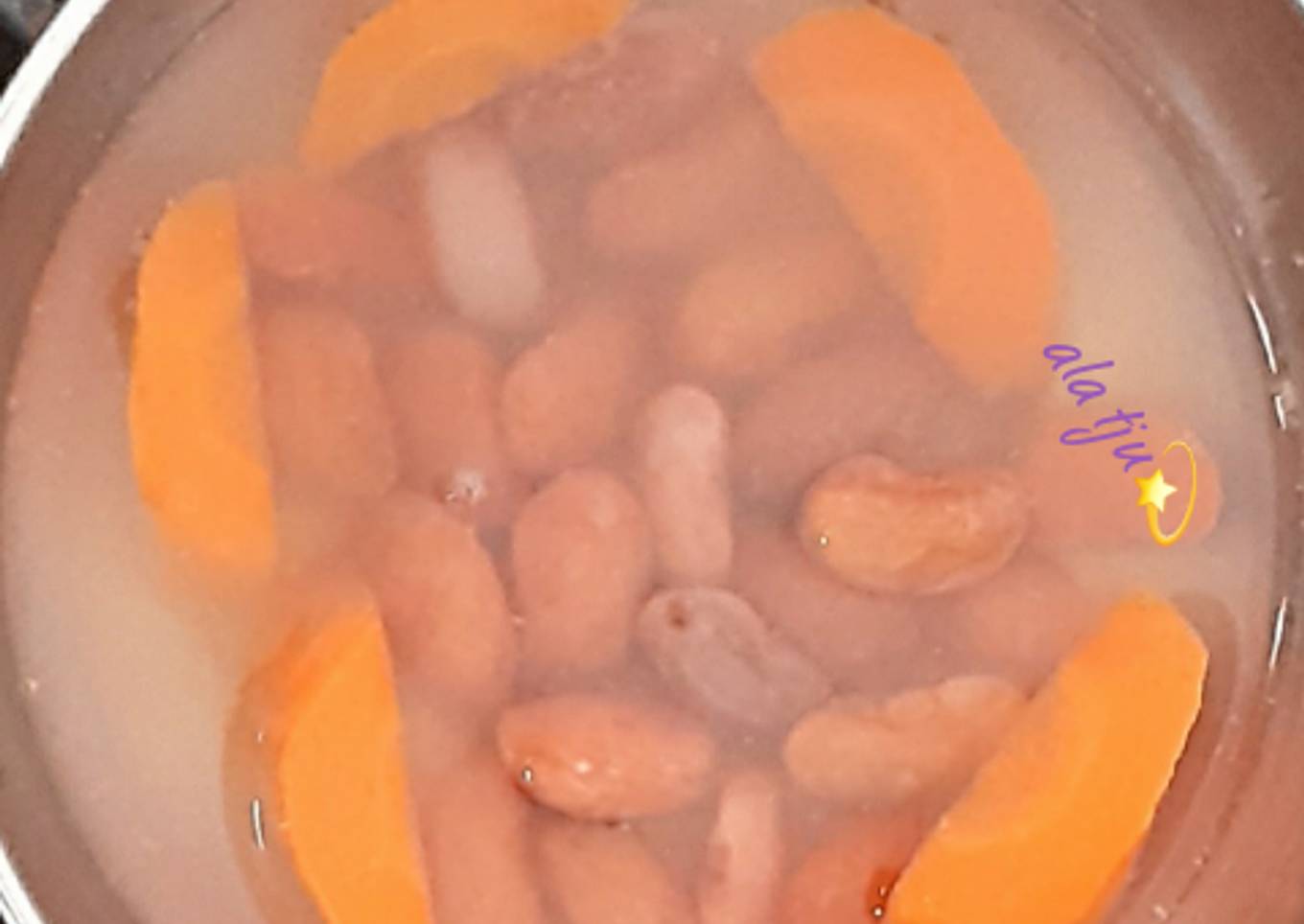 - Kacang merah yg direndam cuci bersih, rebus, lalu buang airnya, ganti air baru dan rebus lagi