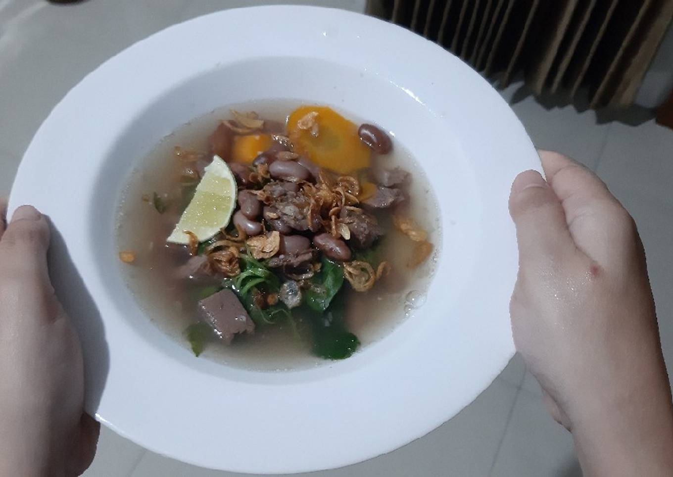 - 250 gr rebusan daging sapi dan kaldunya