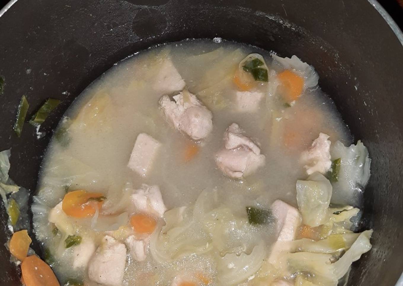- Setelah mendidih sedikit, masukkan kol, wortel dan ayam fillet yg sudah ditiriskan.