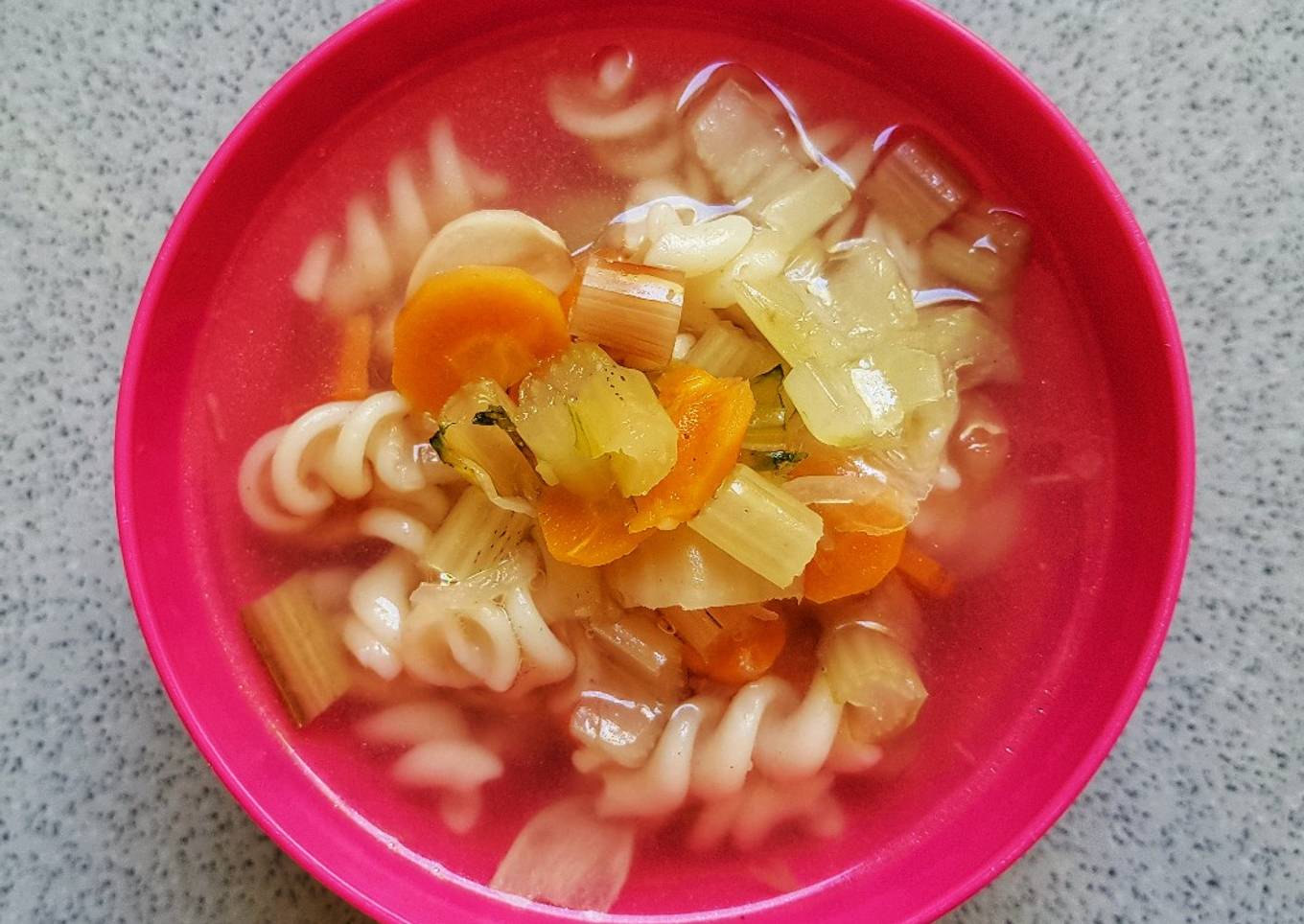 - Masukkan fusilli, wortel, seledri, garam, merica