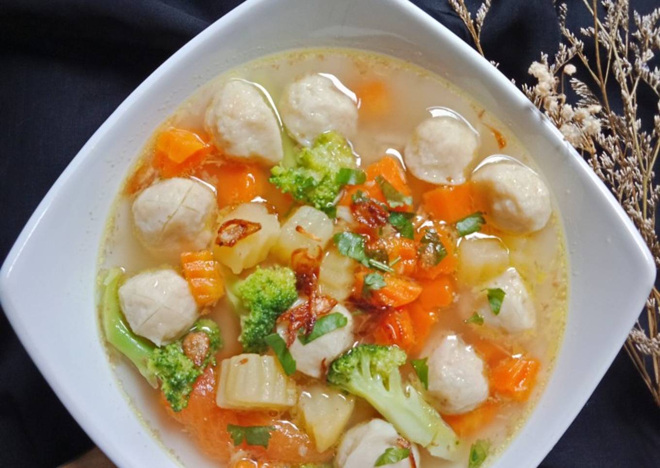 - Didihkan air kaldu ayam masukkan jahe geprek kentang dan wortel rebus sampai empuk tambahkan bumbu tumisan garam dan lada masukkan bakso tunggu mendidih sebentar masukkan brokoli dan terakhir masukkan tomat koreksi rasa matikan api angkat dan tuangkan kedalam mangkuk beri taburan bawang goreng dan daun seledri