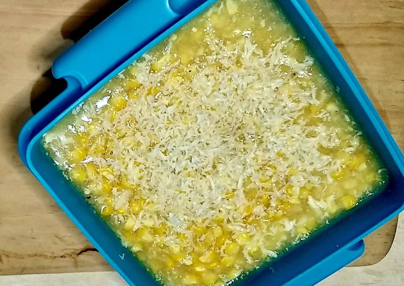 - Jagung yg sudah dipipil rebus sebentar lalu tiriskan. Tumis bawang putih dgn minyak wijen lalu masukan jagung,air, garam, lada bubuk dan totole aduk2