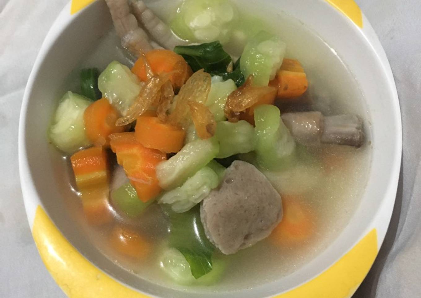 Banyak hal yang sedikit banyak mempengaruhi kualitas rasa dari Sup oyong / gambas ala fe, pertama dari jenis bahan, kemudian pemilihan bahan segar, hingga cara mengolah dan menghidangkannya. Tidak usah pusing kalau ingin menyiapkan Sup oyong / gambas ala fe enak di rumah, karena asal sudah tahu triknya maka hidangan ini bisa jadi suguhan spesial. Selanjutnya merupakan gambar seputar Sup oyong / gambas ala fe yang dapat kamu jadikan ide.
