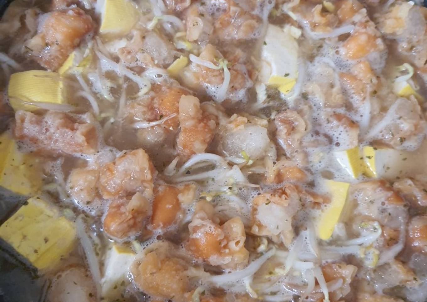 Lagi pengen makan anget-anget, mari kita buat sup special pake siomay kering, tahu dan toge.