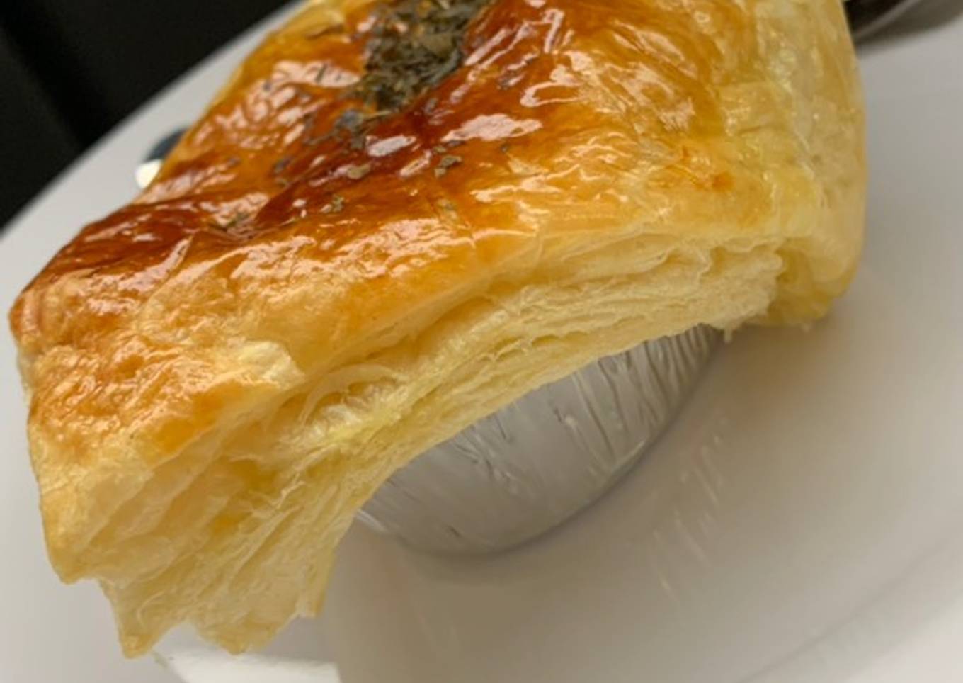 - Masukkan kedalam cup, jangan penuh2 yaa 3/4 bagian saja. Lalu oleh pinggir cup dan kulit pastry dengan putih telur agar merekat. Lalu oles bagian atas dengan kuning telur+diberi parsley (kalau mau ganti parutan keju juga bisa)