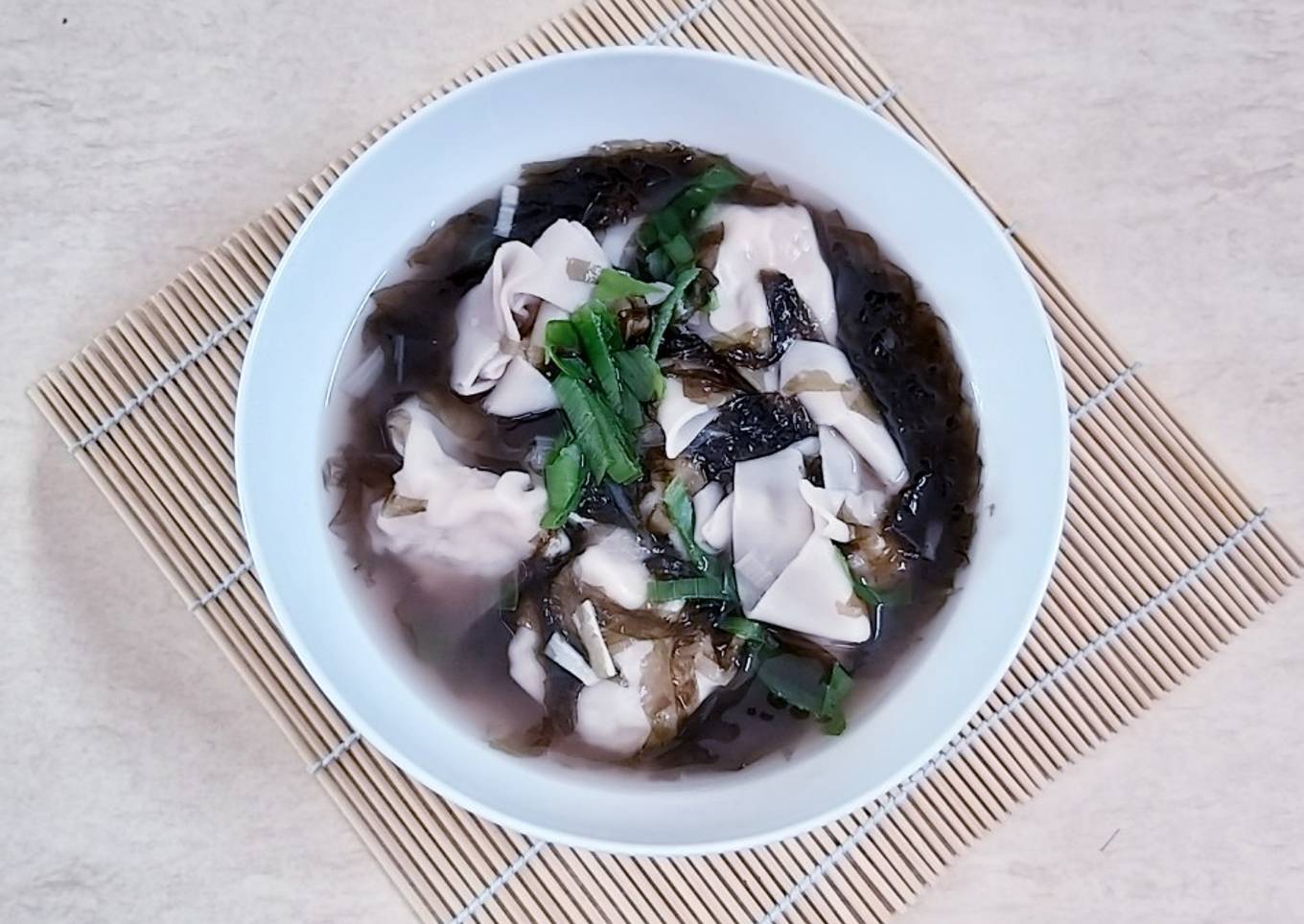 - Kuah teri masak bersama bawang bombay dan bawang putih beri soy sauce,lada bubuk,kaldu jamur dan garam lalu masukan rumput laut masak sampai bumbu meresap lalu masukan dumpling dan daun bawang putihnya saja