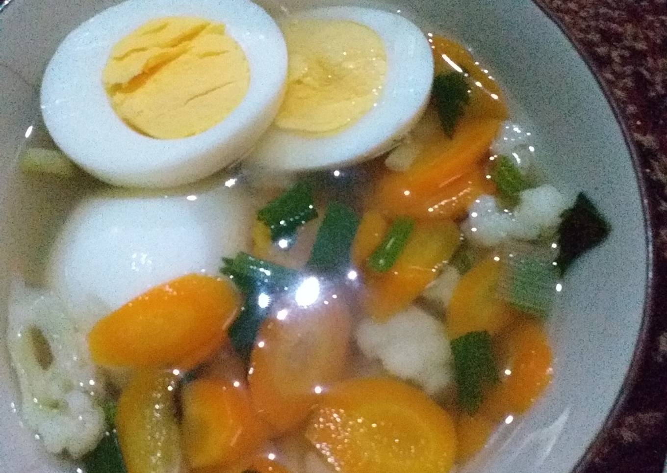 Ada beberapa hal yang sedikit banyak berpengaruh terhadap kualitas rasa dari Sup sayuran telur rebus, mulai dari jenis bahan, selanjutnya pemilihan bahan segar, sampai cara membuat dan menyajikannya. Tak perlu pusing kalau mau menyiapkan Sup sayuran telur rebus yang enak di mana pun anda berada, karena asal sudah tahu triknya maka hidangan ini dapat jadi suguhan spesial. Next adalah gambar tentang Sup sayuran telur rebus yang dapat sobat jadikan inspirasi.