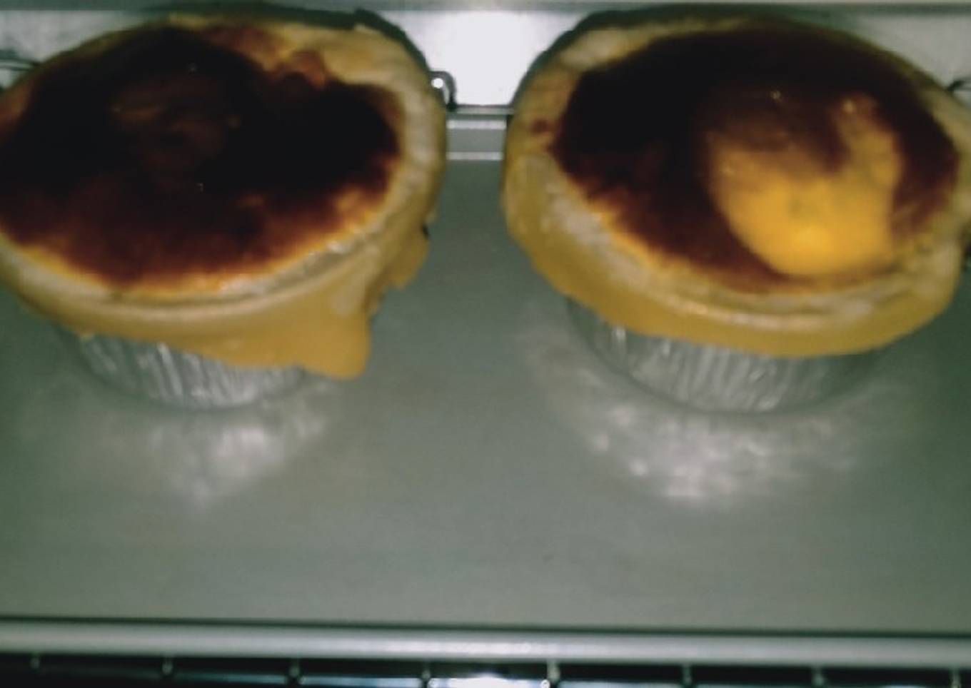 - Pecahkan telur ayam lalu ambil kuningnya sebagai olesan bagian atas puff pastry & olesi pada pinggiran almunium foil agar puff pastry menempel.