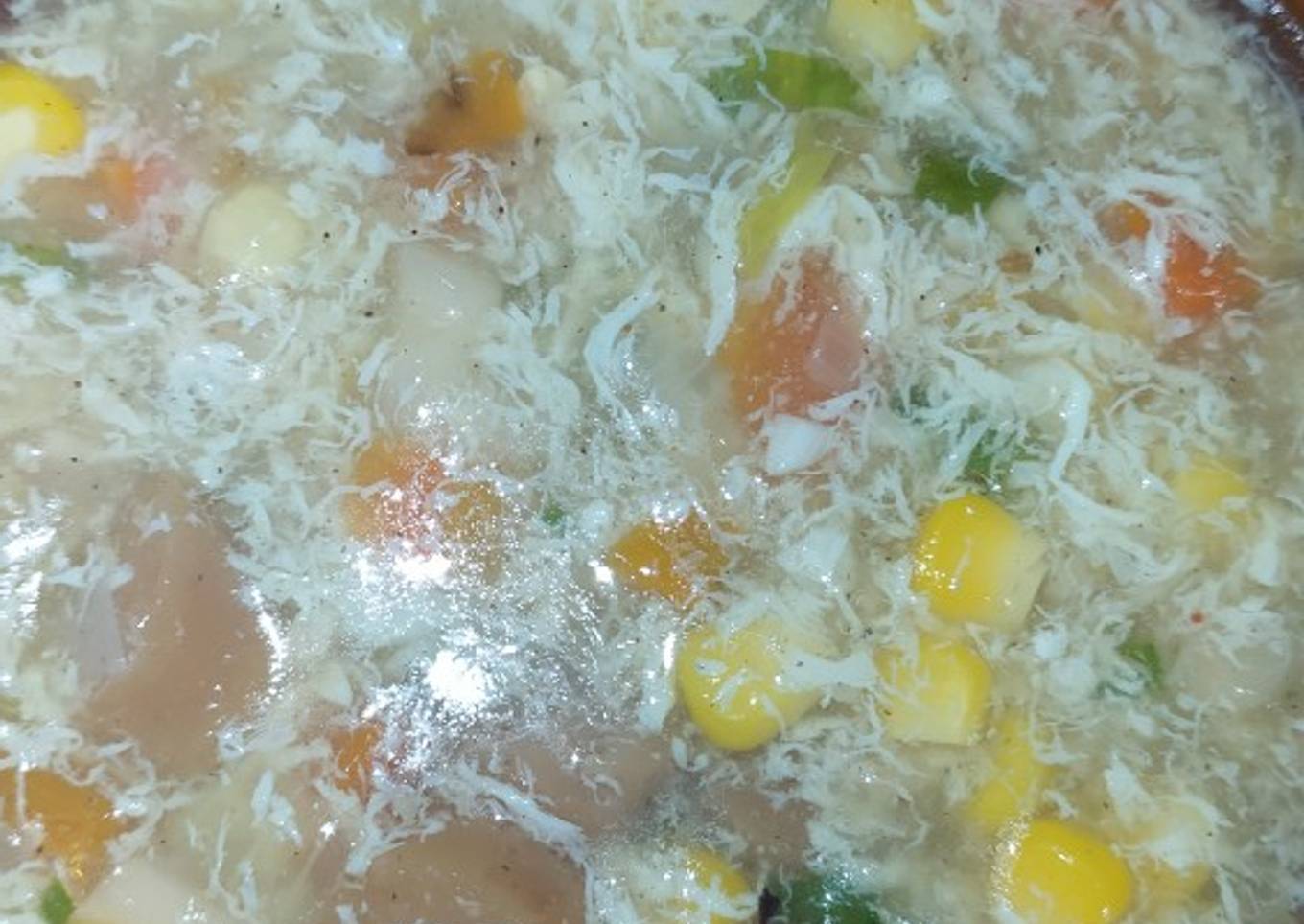 - Setelah mendidih masukkan telur yg sdh di kocok sambil di aduk, lalu masukkan larutan tepung maizena sedikit demi sedikit sambil di aduk