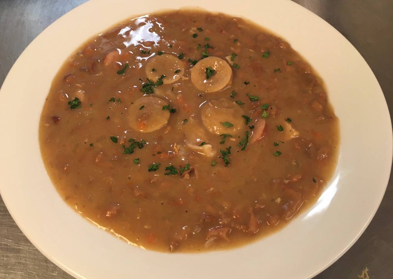 Yuk yang mau buat bruine bone soup merapat, sop kacang merah ini sungguh enak, gurih dan jos banget pokoknya. Di tambah dengan daging dan sosis dan di masak menggunakan tulang2 sapi menambah gurih sop ini, Penasaran seperti apa rasanya? yuk langsung saja goyang dapurmu. Have a great day and happy cooking! salam sehat buat kita semua. #AkuMemasakSesuatuUntukmu #SopKacangMerah