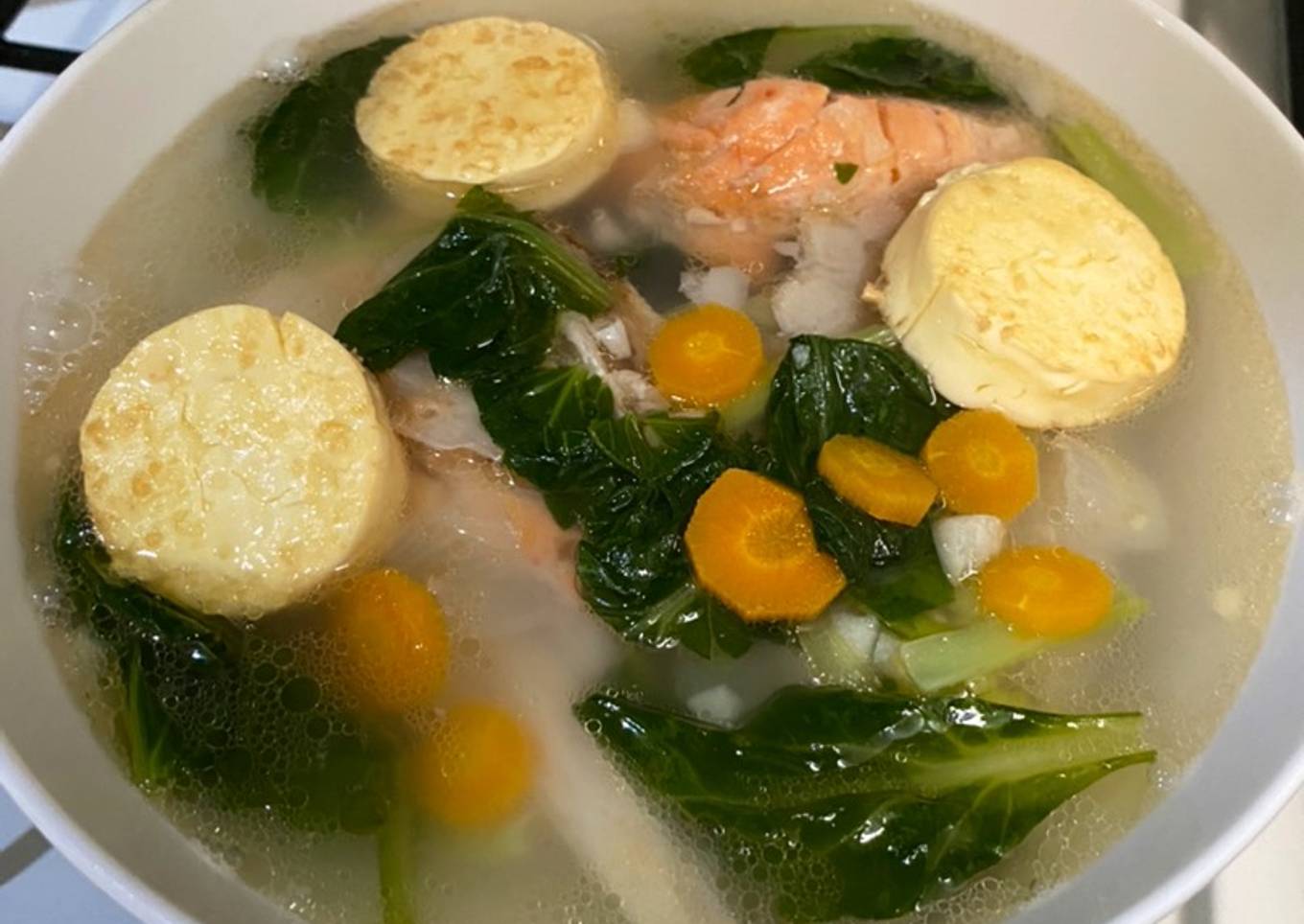 Kemarin beli kepala salmon buat kaldu dan sekalian makan anak lanang, tinggal tambahin sayur2an dan tofu..