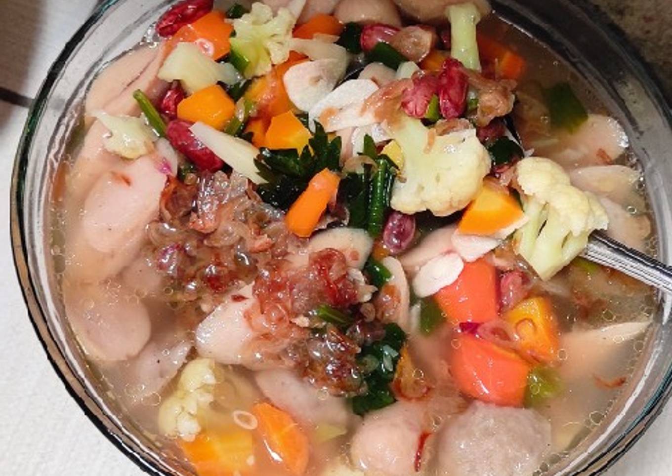 Bagaimana Menyiapkan Sup bakso sosis kacang merah Anti Gagal