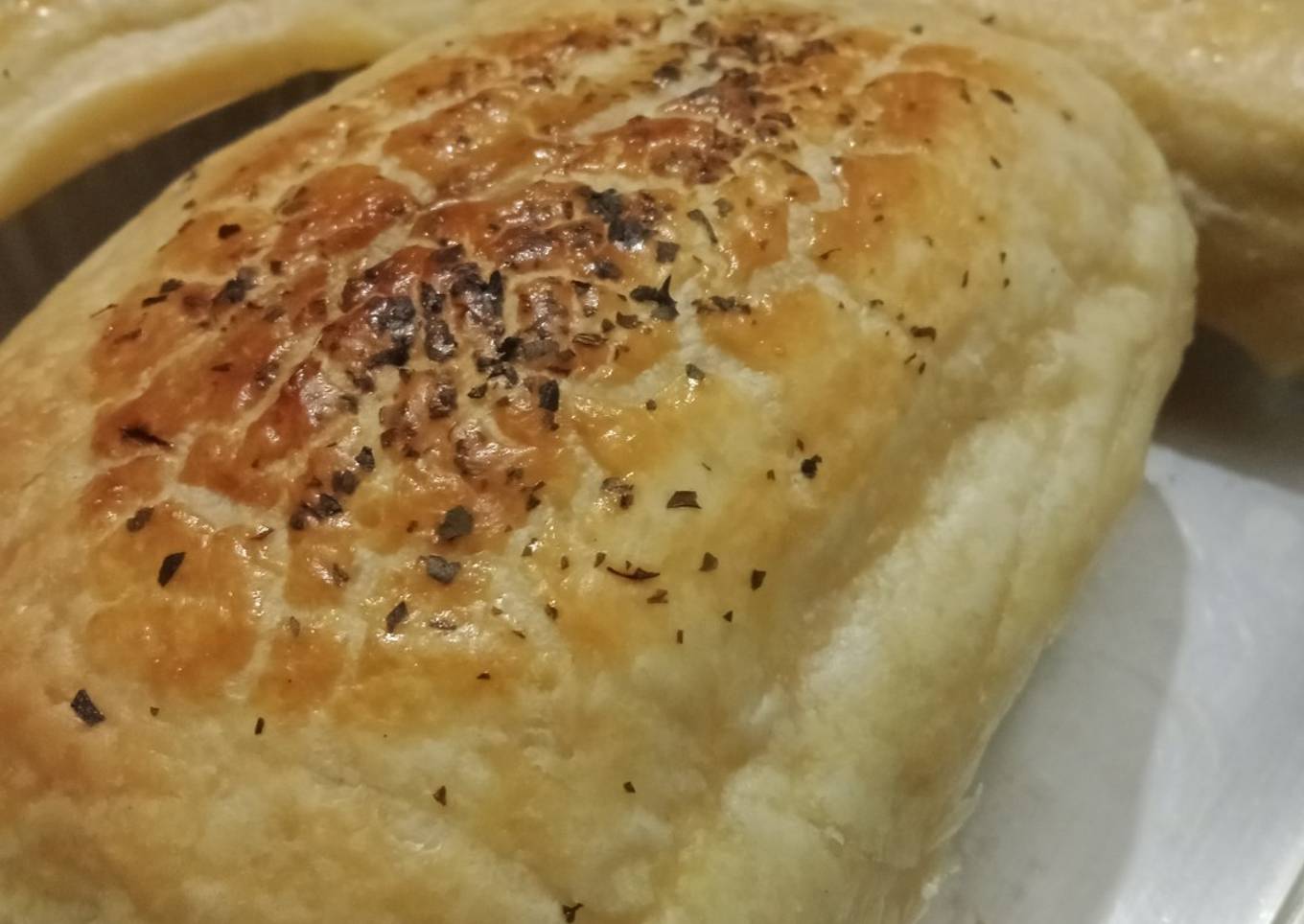 - Masukkan Soup cream ke dalam cup alumunium, tutup dg pastry, olesi dengan kocokan telur,taburi prutan keju & parsley.