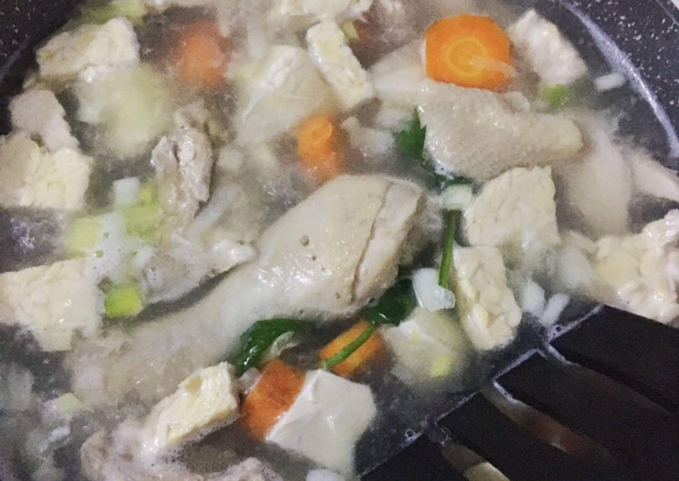 Langkah-langkah membuat Sop ayam tahu tempe wortel rebus (aman untuk gerd)