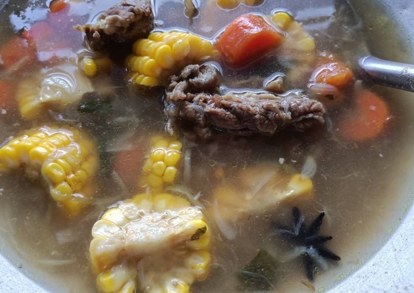 - Tumis bawang merah, bawang putih,bawang bombay, sampai harum. Setelah harum masukkan air,jagung manis,wortel,garam,lada,seledri dan daun bawang.