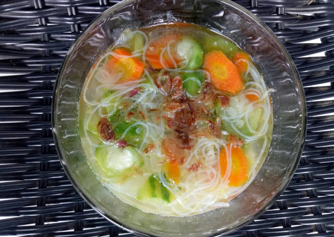 - Panaskan minyak, tumis duo bawang smpai layu lalu masukan air masak sampai mendidih, jika sudah masukan wortel besrta oyong.