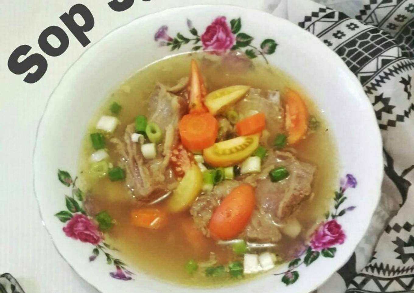 Awalnya saya g ngeh dgn sup janda ini...saya pikir itu sup menu d warteg depan dan yg punya warteg itu Janda😁😁. Saya tanya pak su, emang yg punya warteg depan itu janda, kok orang2 suka bilang sup janda sup janda gitu. Pak su bilang, bukan bunda.. itu emang ada nma sup janda yg kepanjangan nya Jawa Sunda. Penasaran kan jadi nya saya, gmana bikin sup janda itu. Kebetulan tetangga suka bikin sup ini ketika hari raya qurban. Tapi pedes nya pake banget banget. Dan pak su g bakalan nyentuh krn g tahan sama pedes yg level d atas 2. Y udah saya tanya tetangga apa aja bumbu nya. D kasi lah bocoran bumbu2 nya. Dan ini hasil takaran nya, ada yg d tambah dari saya. Dapat acungan jempol oleh pak su. Klo penasaran dgn rasa nya, langsung Recook aja bunda.