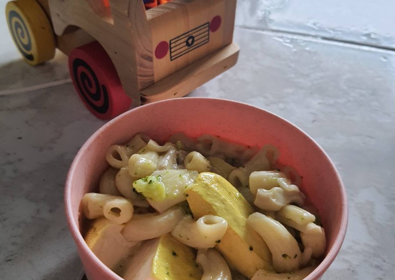 - Rebus brokoli dan makaroni sampai agak lembek dan lembut untuk dimakan bayi, lalu masukan tahu, parsley bubuk, garam, lada putih bubuk, bawang putih bubuk dan minyak wijen, lalu aduk rata.