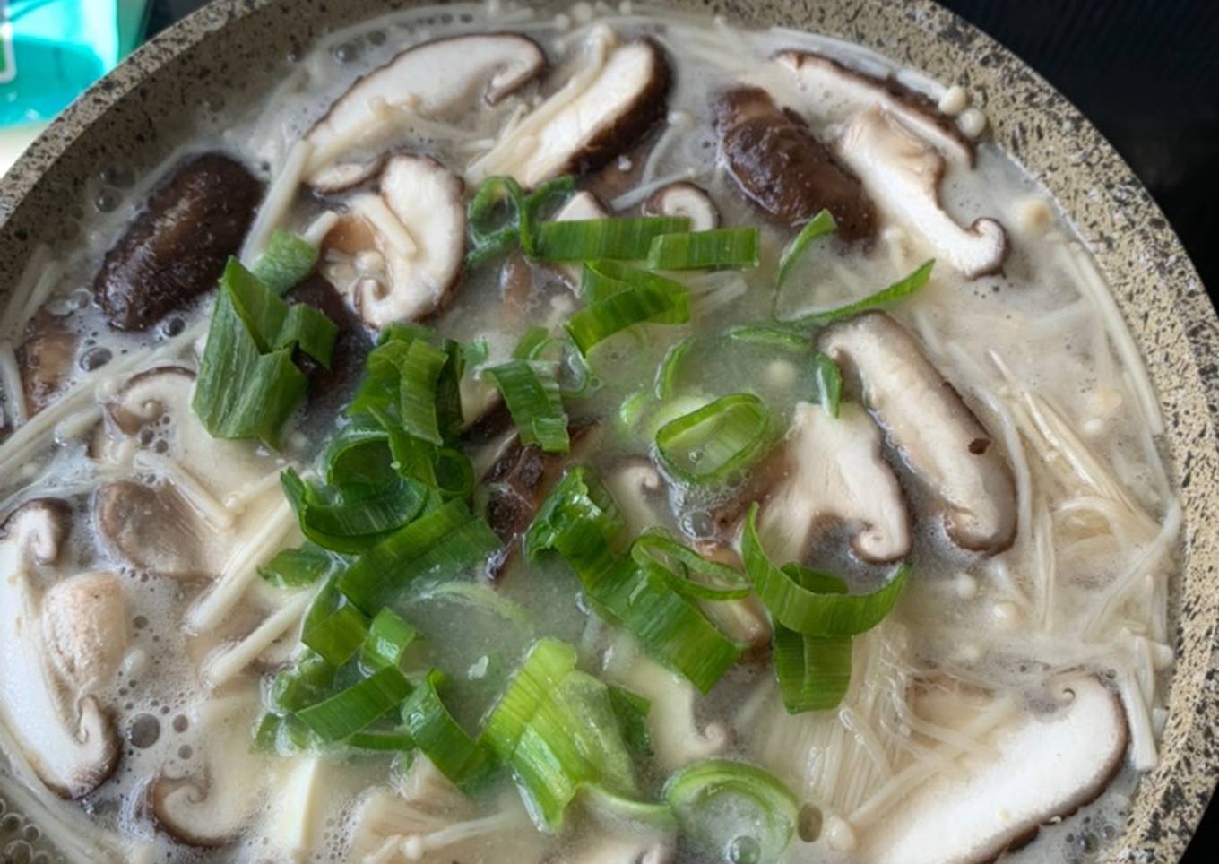 - Didihkan air dan berikan bubuk kaldu ikan(boleh diganti kaldu jamur)