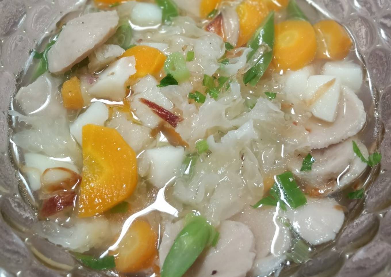 Ada beberapa hal yang sedikit banyak berpengaruh terhadap kualitas rasa dari Sup jamur kristal, mulai dari jenis bahan, selanjutnya pemilihan bahan segar, sampai cara mengolah dan menyajikannya. Tak perlu pusing kalau mau menyiapkan Sup jamur kristal yang enak di mana pun anda berada, karena asal sudah tahu triknya maka hidangan ini dapat menjadi suguhan istimewa. Seterusnya adalah gambar tentang Sup jamur kristal yang bisa Anda jadikan ide.