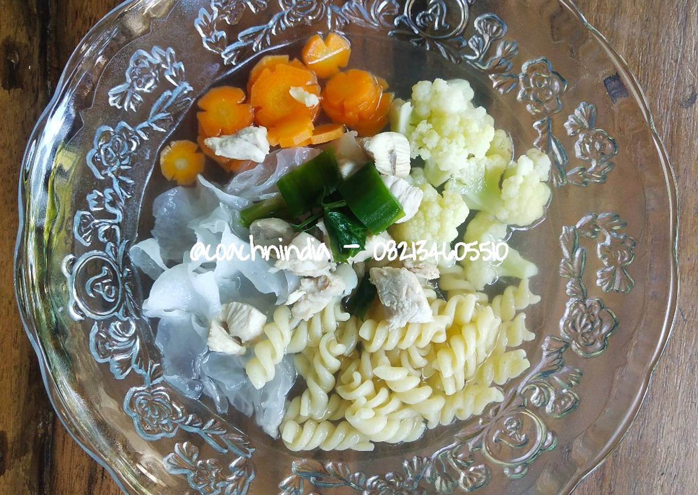 - Pelengkap (wortel, kembang kol, jamur putih, makaroni)