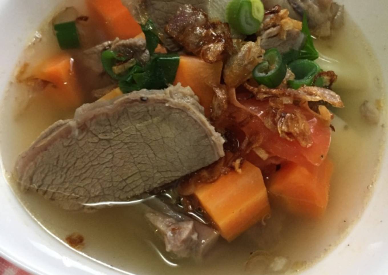 Banyak hal yang sedikit banyak berpengaruh terhadap kualitas rasa dari Sup Daging, pertama dari jenis bahan, selanjutnya pemilihan bahan segar, hingga cara membuat dan menghidangkannya. Tak perlu pusing jika mau menyiapkan Sup Daging yang enak di mana pun anda berada, karena asal sudah tahu triknya maka hidangan ini dapat jadi sajian istimewa. Berikutnya adalah gambar tentang Sup Daging yang dapat kalian jadikan wawasan.