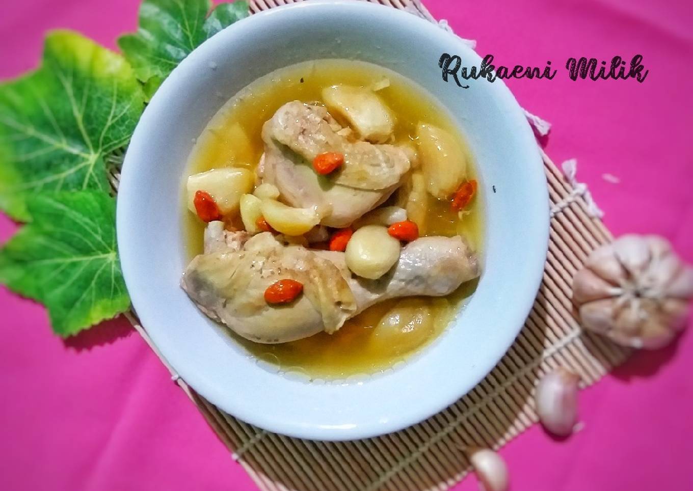 saya membuat resep sup ayam bawang putih dan gojiberry.