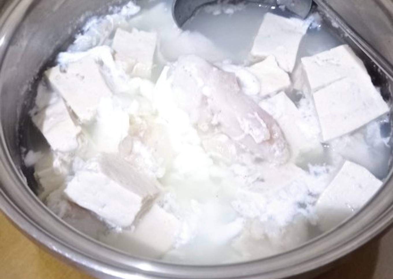 - Masukkan tahu dan ikan dori. Masak 5 menit