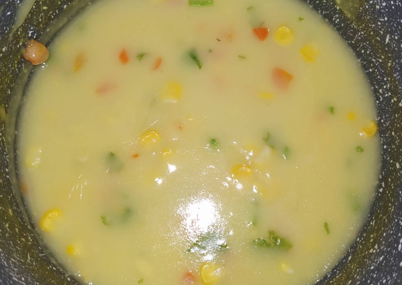 - Siapkan panci, masukkan air dan satu bungkus royco sup krim jagung